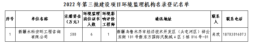 通過建設(shè)項目環(huán)境監(jiān)理機構(gòu)名錄登記的機構(gòu) 名單公示(2022年第三批)