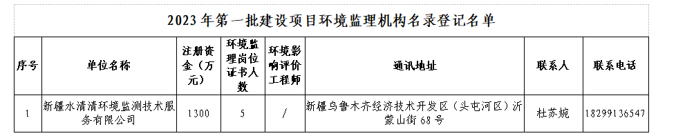 通過(guò)建設(shè)項(xiàng)目環(huán)境監(jiān)理機(jī)構(gòu)名錄登記的機(jī)構(gòu)名單公示(2023年第一批)