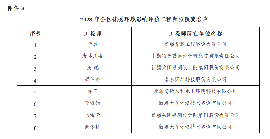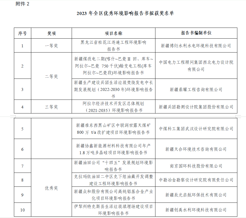 關于對2023年優(yōu)秀環(huán)境影響評價機構、優(yōu)秀環(huán)境影響報告書及優(yōu)秀環(huán)境影響評價工程師評選結果公示的通知