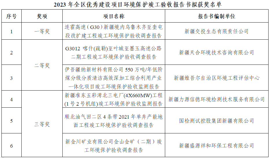 關(guān)于對2023年全區(qū)優(yōu)秀建設(shè)項(xiàng)目環(huán)境保護(hù)竣工驗(yàn)收報(bào)告書評選結(jié)果公示的通知