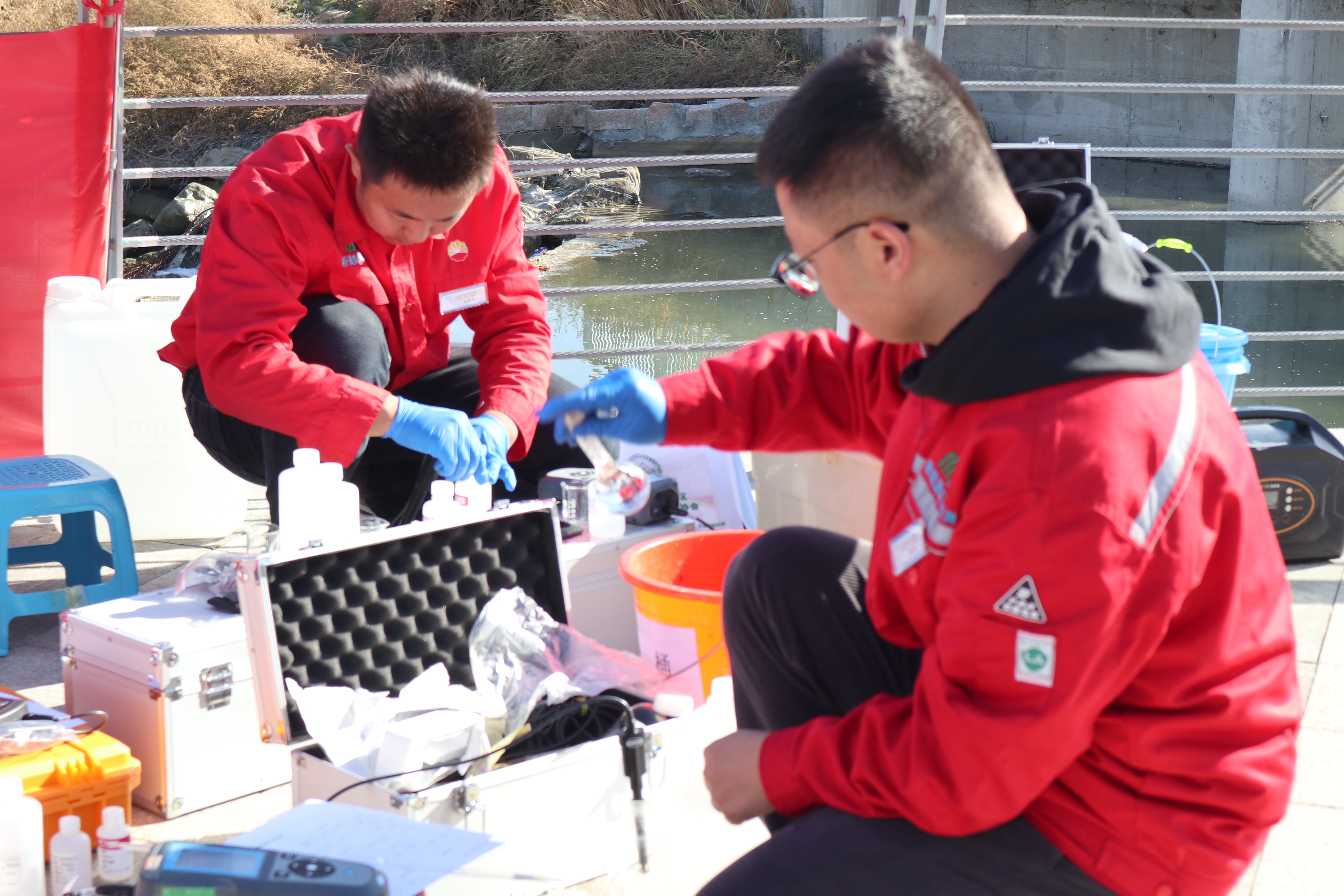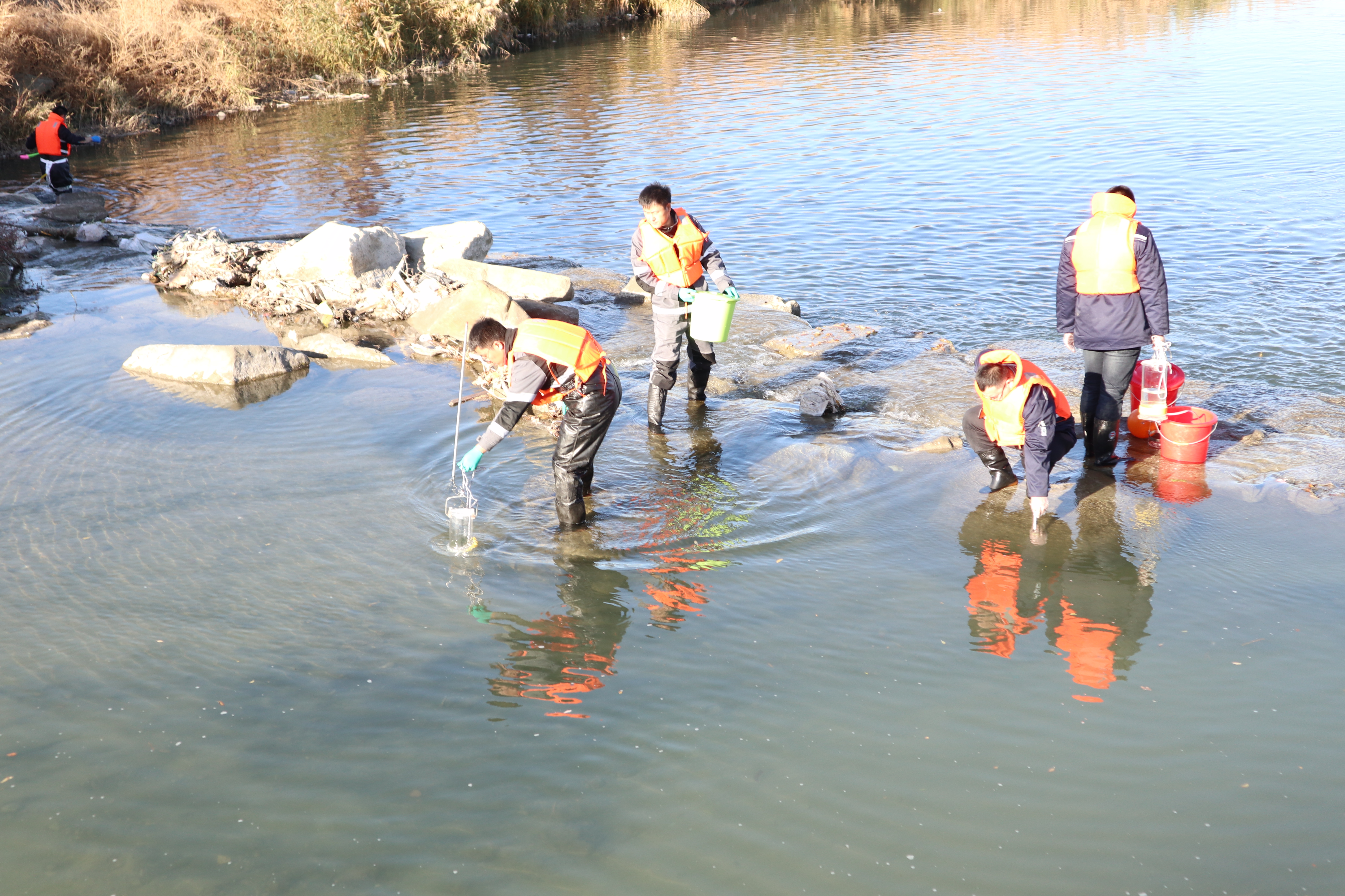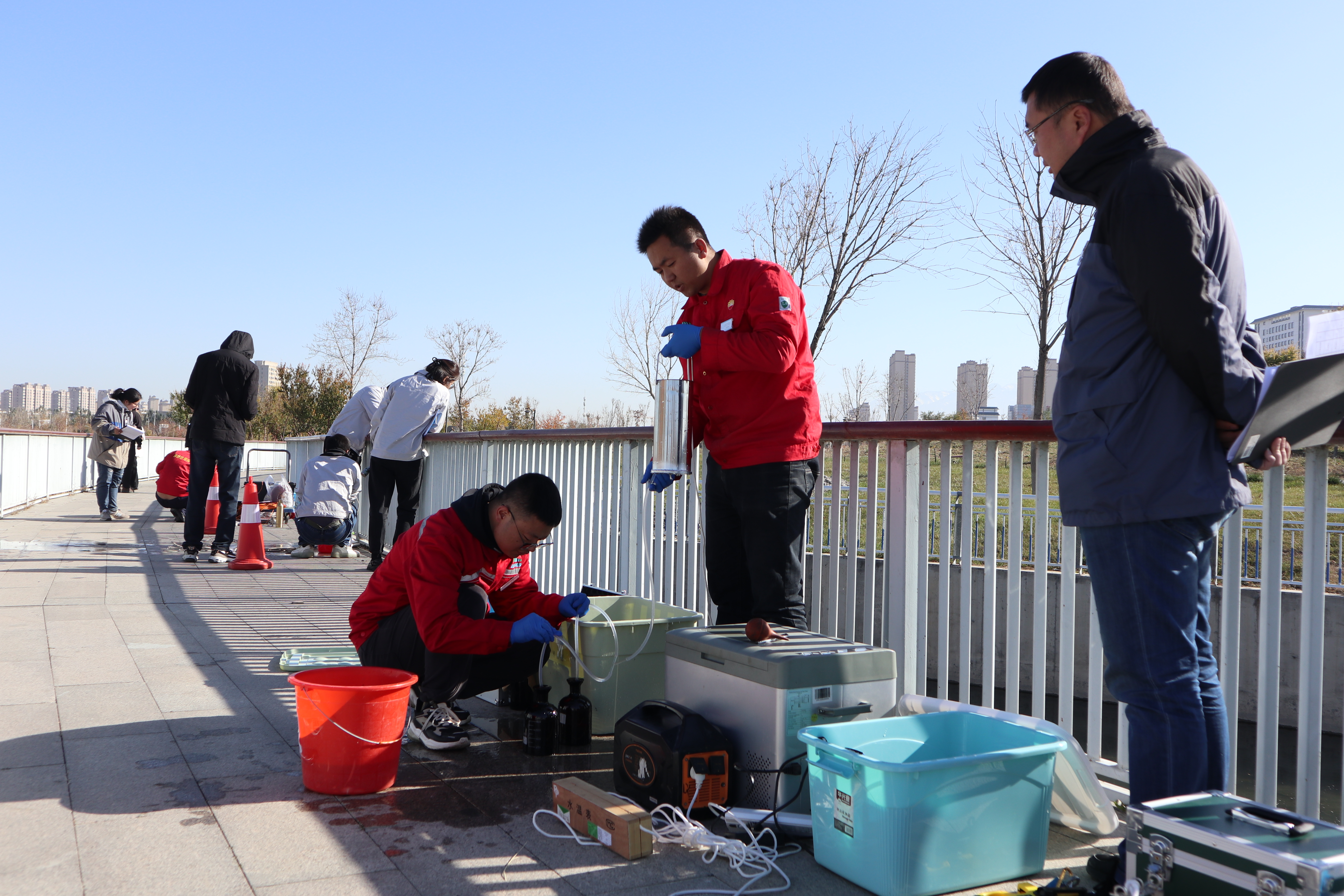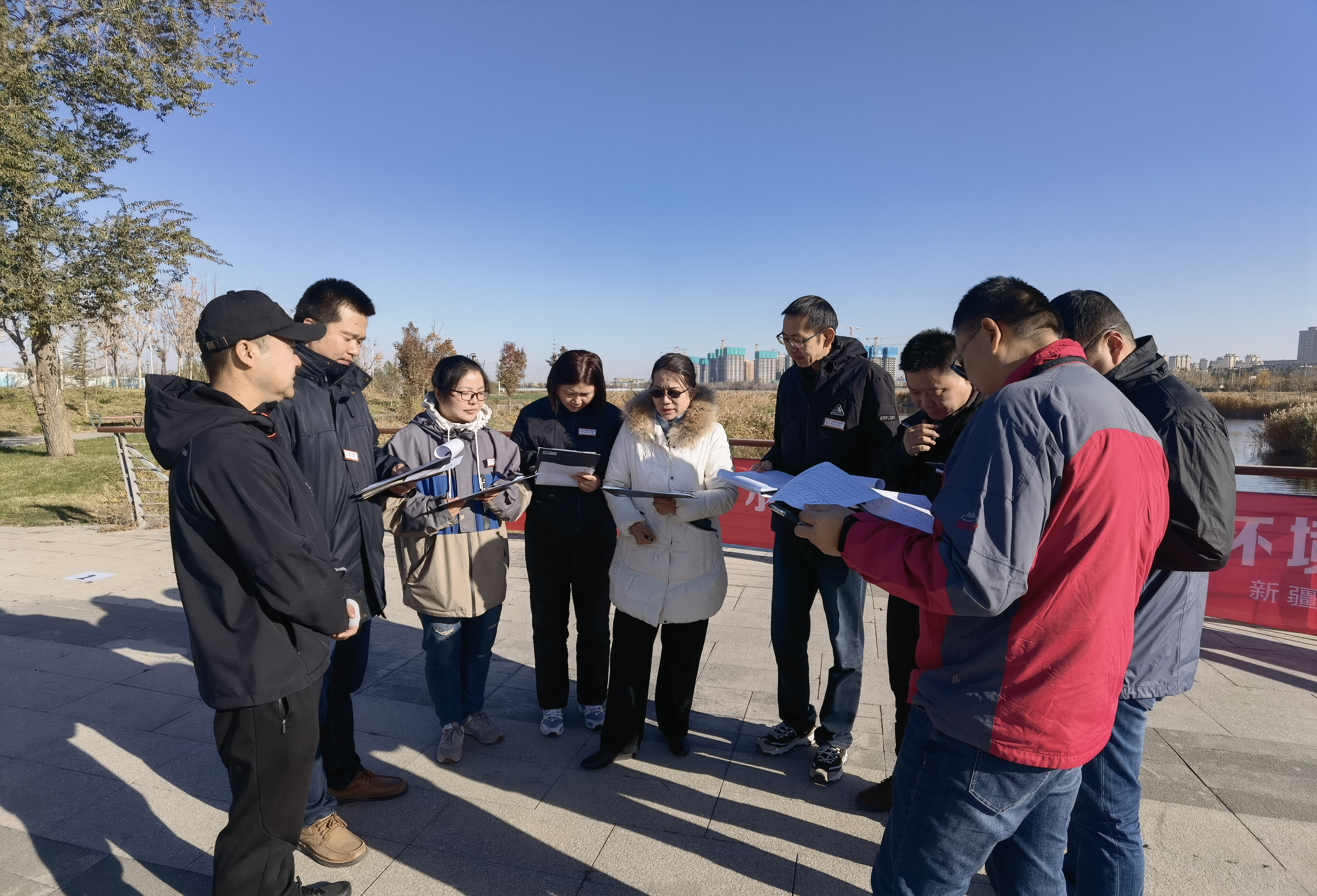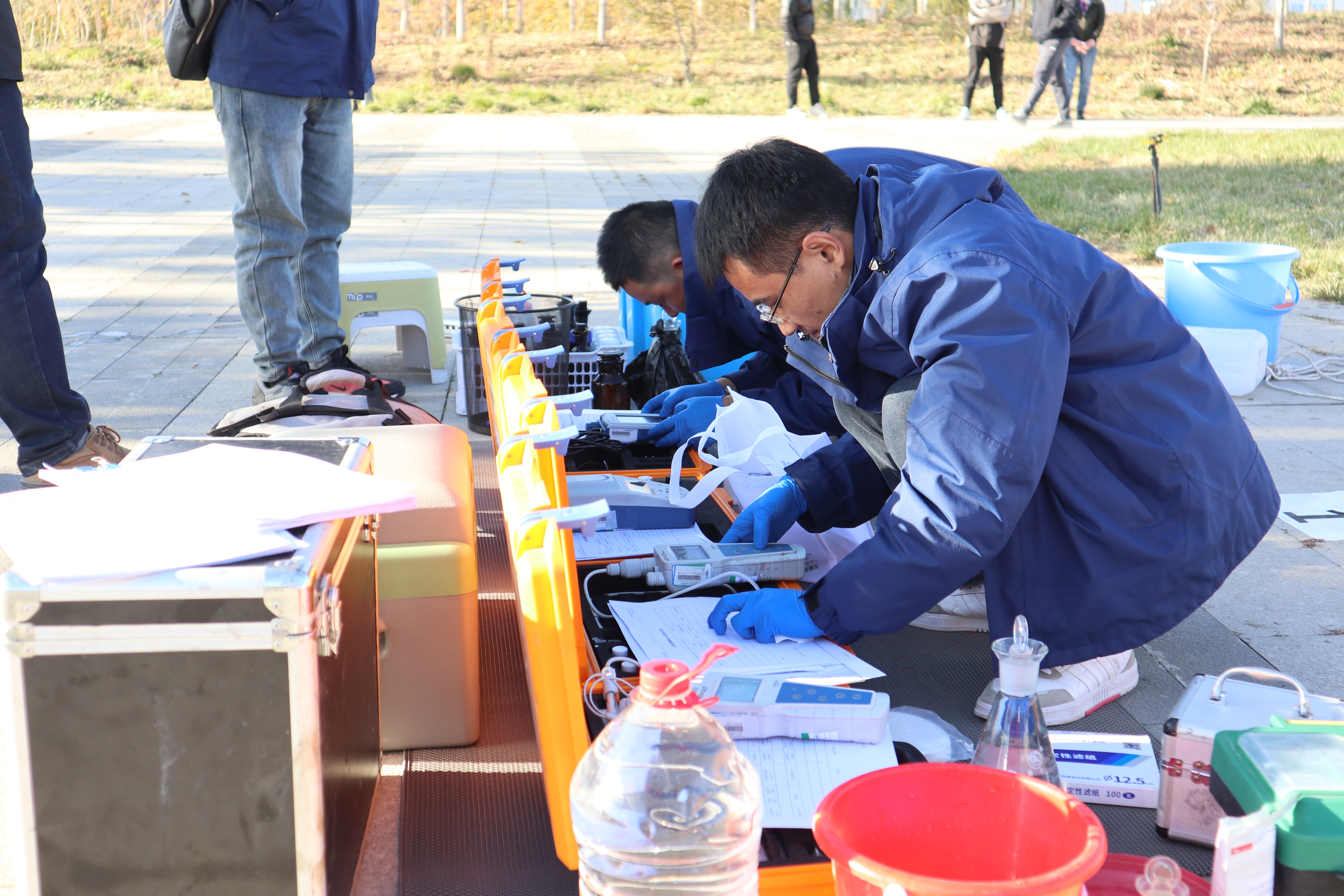 12支參賽代表隊(duì)的36名選手,按抽簽結(jié)果參賽隊(duì)分為兩組進(jìn)行現(xiàn)場(chǎng)實(shí)操比武。上午十點(diǎn)半,第一組的6支參賽隊(duì)陸續(xù)抵達(dá)米東區(qū)水磨河公園內(nèi)的現(xiàn)場(chǎng)實(shí)操比武河流斷面集合點(diǎn)。副秘書長(zhǎng)賀華、專家組組長(zhǎng)申旭輝與評(píng)委們明確判定標(biāo)準(zhǔn)后,再次要求所有專家要秉持科學(xué)、公正、公開的原則對(duì)參賽隊(duì)伍進(jìn)行評(píng)分,同時(shí)對(duì)專家分組進(jìn)行抽簽。