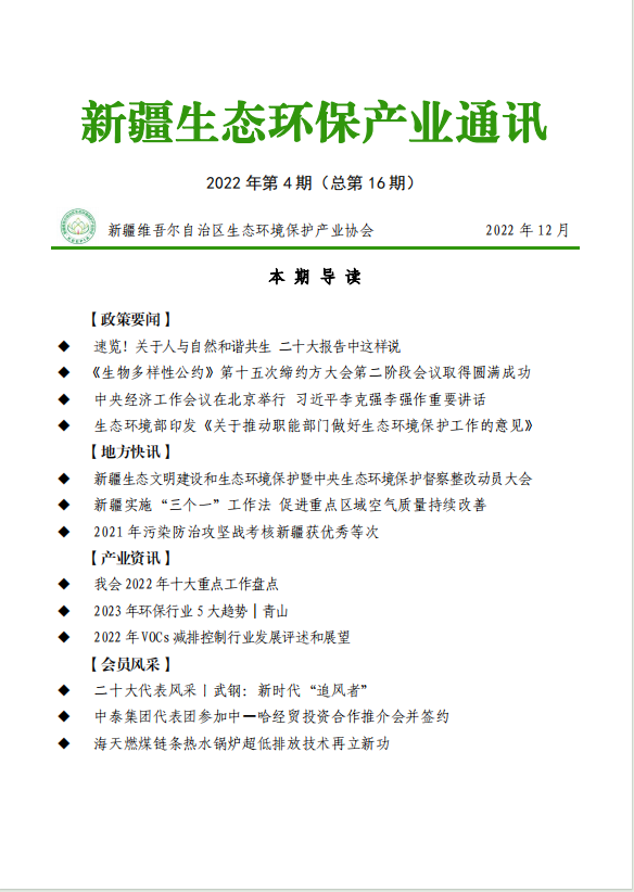 2022年新疆生態(tài)環(huán)保產(chǎn)業(yè)通訊(第十六期)
