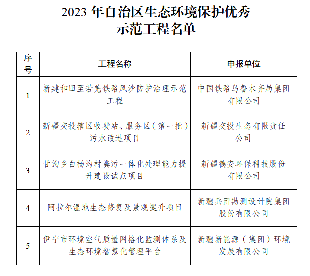 關于對2023年自治區(qū)生態(tài)環(huán)境保護優(yōu)秀 示范工程評審結果的公告