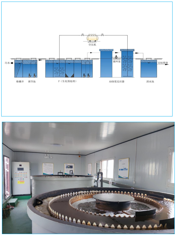 工藝流程:阿恰服務(wù)區(qū)采用PAD工藝(“格柵+調(diào)節(jié)池+P預(yù)處理+AD反應(yīng)器+消毒”工藝)。