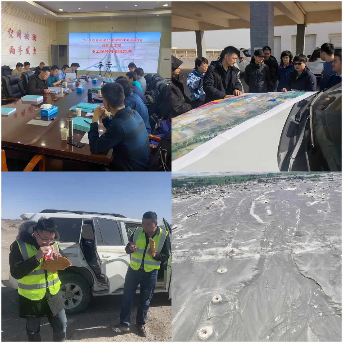 G30星哈段與哈吐段屬于國(guó)家高速公路連霍高速的重要組成部分,工程總長(zhǎng)537.245km。環(huán)評(píng)與水保方案等前期要件是項(xiàng)目開(kāi)工的必備條件,時(shí)間緊、任務(wù)重、制約因素多,為快速高效推進(jìn)該項(xiàng)目,交投生態(tài)成立黨員突擊隊(duì),采取“領(lǐng)導(dǎo)層垂直管理、內(nèi)外業(yè)并行推進(jìn)、多部門(mén)協(xié)同溝通”的綜合策略,每一條坎兒井都到現(xiàn)場(chǎng)核查、每一個(gè)村莊都去現(xiàn)場(chǎng)監(jiān)測(cè)、每一塊臨時(shí)用地都要現(xiàn)地踏勘……針對(duì)項(xiàng)目區(qū)域點(diǎn)多面廣、線路長(zhǎng)、分布零散、環(huán)境艱苦等特點(diǎn),黨員突擊隊(duì)成員以車(chē)為家,風(fēng)餐露宿,餓了啃塊馕,在荒漠“無(wú)人區(qū)”反復(fù)調(diào)查,確保各類(lèi)數(shù)據(jù)詳盡準(zhǔn)確。白天忙外業(yè),晚上匯數(shù)據(jù)、改報(bào)告,“5+2、白加黑”是工作常態(tài),最大限度提升咨詢(xún)報(bào)告質(zhì)量。同時(shí),積極與水利、林草、生態(tài)環(huán)保等主管部門(mén)和各領(lǐng)域行業(yè)專(zhuān)家溝通對(duì)接,解決項(xiàng)目評(píng)審過(guò)程中的疑難問(wèn)題,確保項(xiàng)目順利通過(guò)評(píng)審。