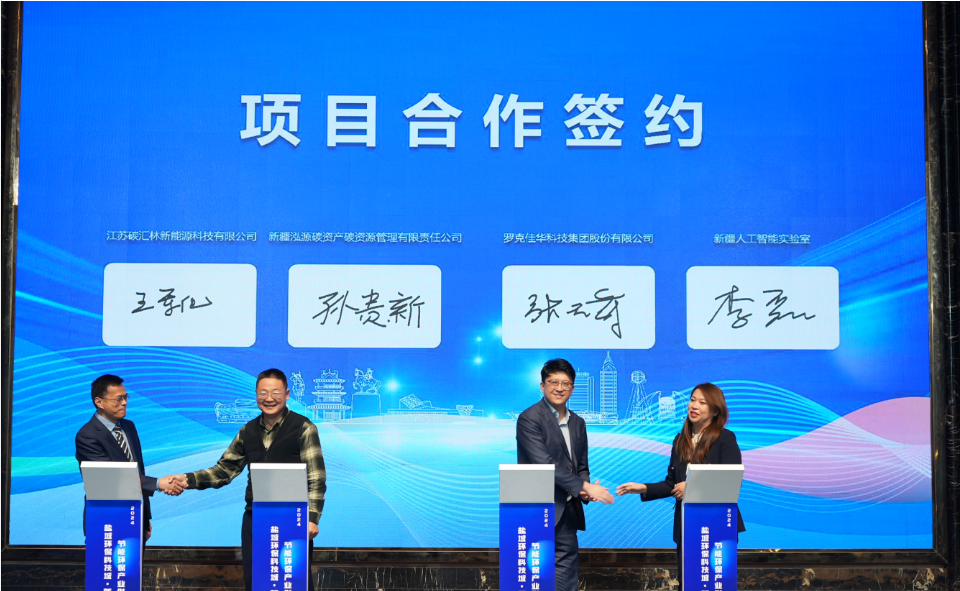 江蘇碳匯林新能源科技有限公司、羅克佳華科技集團(tuán)股份有限公司、新疆泓源碳資產(chǎn)碳資源管理有限責(zé)任公司等多家企業(yè)在會議期間簽訂合作協(xié)議。