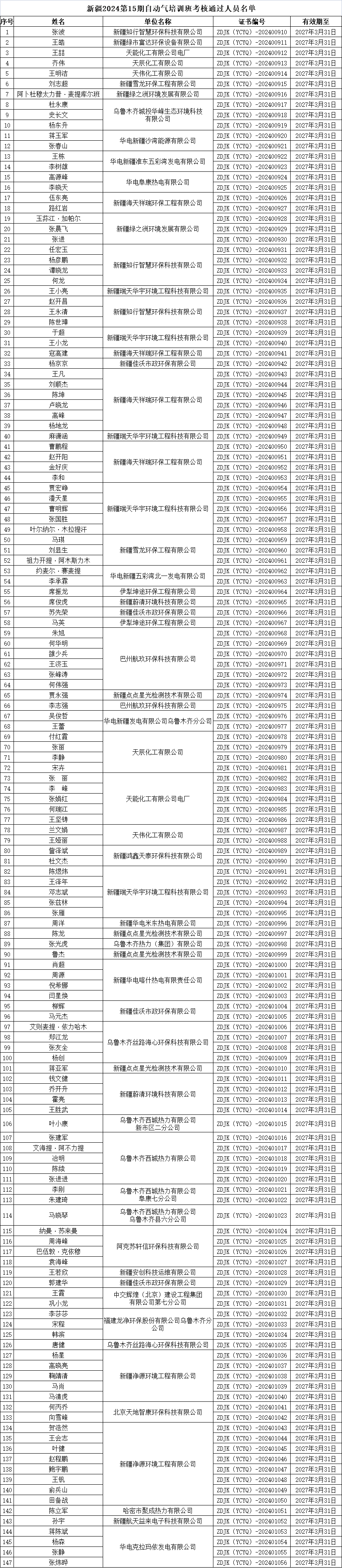 2024年第15期煙塵煙氣連續(xù)自動監(jiān)控系統(tǒng)運行人員培訓(xùn)閱卷批卷及考勤梳理工作已完成,現(xiàn)將此次培訓(xùn)考核通過名單公布如下: