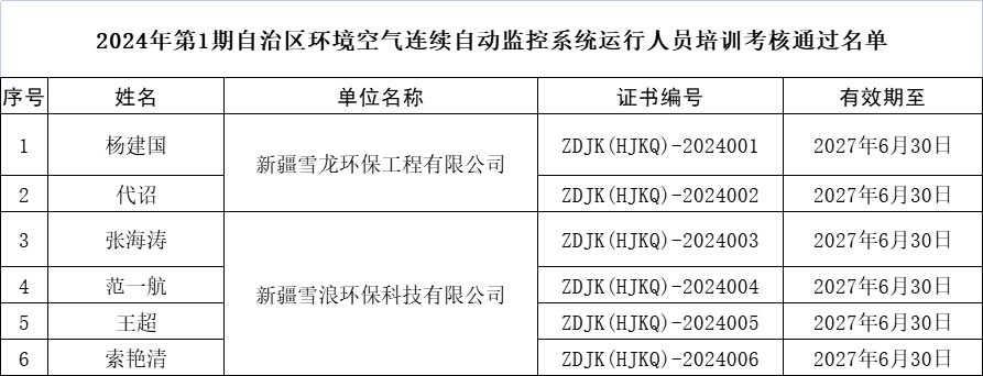 ?2024年第1期自治區(qū)環(huán)境空氣連續(xù)自動(dòng)監(jiān)控系統(tǒng)運(yùn)行人員培訓(xùn)班考核通過(guò)名單公布
