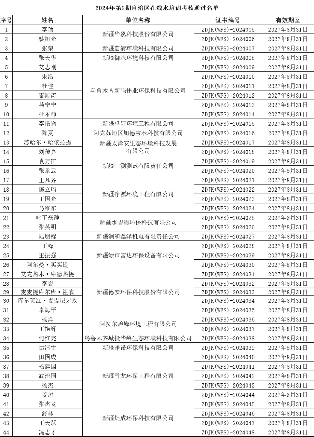 2024年第2期自治區(qū)污廢水連續(xù)自動監(jiān)控系統(tǒng)運行人員培訓班考核通過名單公布