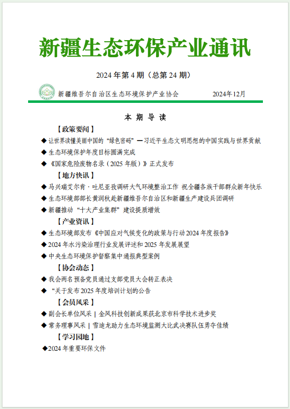 2024年第四季度新疆生態(tài)環(huán)保產業(yè)通訊(第二十四期)