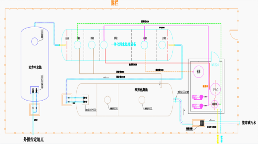 關(guān)鍵技術(shù):1.設(shè)計(jì)模塊化集成控制系統(tǒng),將廢水預(yù)處理,物理化學(xué)處理、微生物處理、消毒、污泥處置的系統(tǒng)實(shí)施優(yōu)化配置與技術(shù)集成,使處理裝置結(jié)構(gòu)緊湊、高效、出水穩(wěn)定。