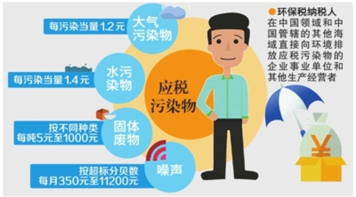 排污費(fèi)改環(huán)保稅,運(yùn)行38年的排污費(fèi)制度將成為歷史。費(fèi)改稅遵循“稅負(fù)平移”的原則,按照“企業(yè)申報(bào)、稅務(wù)征收、環(huán)保協(xié)同、信息共享”的征管模式,納稅人需要自行申報(bào)大氣污染物、水污染物、固體廢物和噪聲四類污染物應(yīng)繳納的環(huán)境保護(hù)稅。對(duì)固體廢物和噪聲實(shí)行固定稅額,其中,固體廢物按不同種類,稅額為每噸5元~1000元;噪聲按超標(biāo)分貝數(shù),稅額為每月350元~11200元。納稅義務(wù)發(fā)生時(shí)間為納稅人排放應(yīng)稅污染物的當(dāng)日,環(huán)保稅按月計(jì)算,按季申報(bào)繳納。