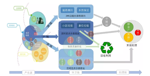 根據(jù)《E20環(huán)衛(wèi)市場(chǎng)化報(bào)告》(2017年),E20將固廢產(chǎn)業(yè)鏈分為產(chǎn)生源、環(huán)衛(wèi)鏈和處理端三個(gè)環(huán)節(jié)。其中,環(huán)衛(wèi)鏈主要包括道路清掃保潔、垃圾收運(yùn)、垃圾分類和垃圾回收利用等內(nèi)容。