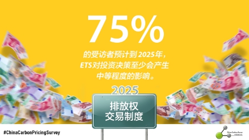 據(jù)受訪者預(yù)測(cè),國(guó)家碳排放交易體系內(nèi)的碳價(jià)將穩(wěn)步上升,從2017年38元人民幣/噸上漲至74元人民幣/噸(2020年)、108元人民幣/噸(2025年)。受訪者認(rèn)為碳排放交易在未來(lái)將日益影響投資決策。38%的受訪者預(yù)計(jì)2017年的投資決策將大幅或一定程度上受到碳排放交易的影響,至2025年之前,這一比例上漲到了75%。