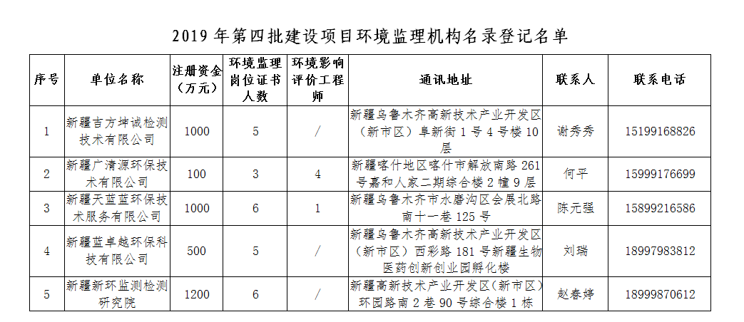 通過(guò)建設(shè)項(xiàng)目環(huán)境監(jiān)理機(jī)構(gòu)名錄登記的監(jiān)理機(jī)構(gòu)名單公示2019年第四批
