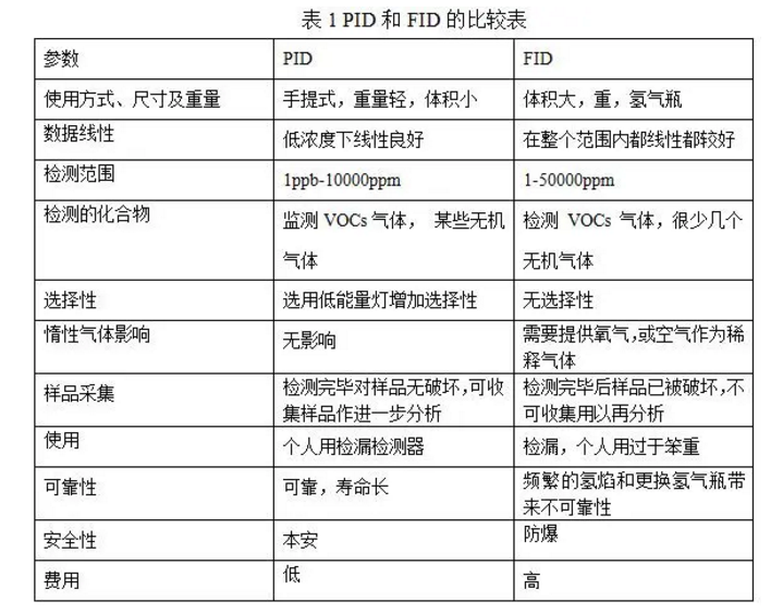 VOCs的治理技術(shù)、設(shè)備與工程均與VOCs達(dá)標(biāo)與否有著直接的關(guān)系,但是VOCs排放的有效性評價(jià)也是至關(guān)重要的一環(huán)。有效性評價(jià)是一把尺子,衡量指標(biāo)包括凈化率、出口濃度、排放速率等,評價(jià)手段包括第三方評測和在線連續(xù)監(jiān)測,其中在線監(jiān)測手段是企業(yè)最常用的手段。表1是FID和PID檢測器的比較表。