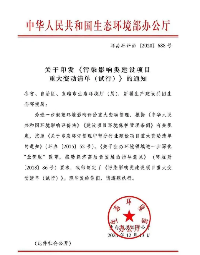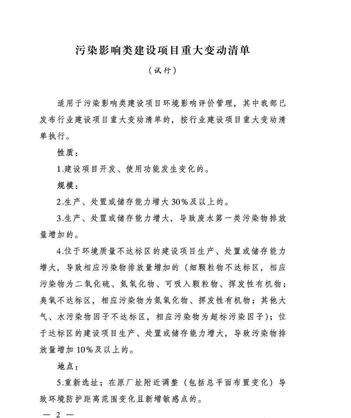 全文|生態(tài)環(huán)境部印發(fā)《污染影響類建設(shè)項(xiàng)目重大變動(dòng)清單(試行)》