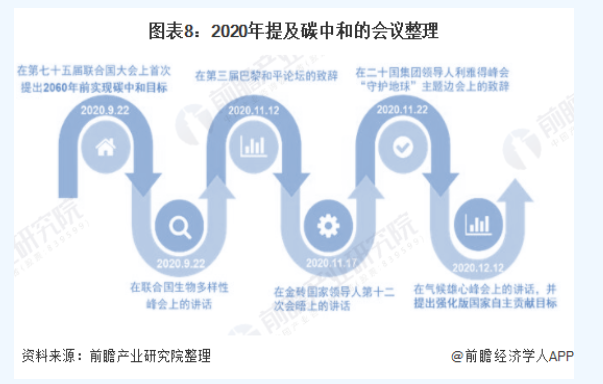 碳中和目標(biāo)多次被提及,彰顯中國應(yīng)對全球氣候變化決心。2020年9月22日,中國國家主席習(xí)近平在第七十五屆聯(lián)合國大會上首次提出“中國將提高國家自主貢獻(xiàn)力度,采取更加有力的政策和措施,二氧化碳排放力爭于2030年前達(dá)到峰值,努力爭取2060年前實現(xiàn)碳中和”,隨后在各大國際會晤中多次提及2060碳中和目標(biāo),彰顯中國應(yīng)對全球氣候變化的決心。