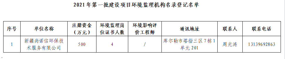 通過建設(shè)項目環(huán)境監(jiān)理機(jī)構(gòu)名錄登記的機(jī)構(gòu)名單公示(2021年第一批)
