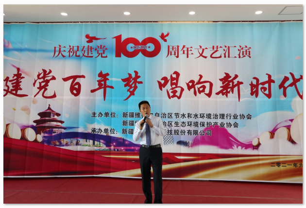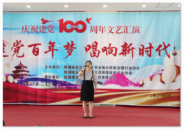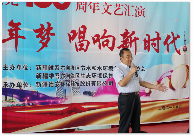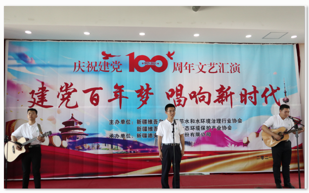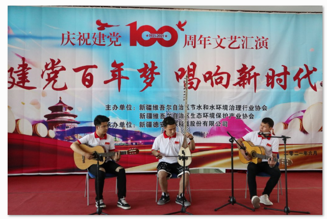 為致敬中國(guó)共產(chǎn)黨百年華誕,獻(xiàn)禮建黨100周年,6月30日下午,由新疆生態(tài)環(huán)境保護(hù)產(chǎn)業(yè)協(xié)會(huì)(以下簡(jiǎn)稱:環(huán)保協(xié)會(huì))與新疆節(jié)水和水環(huán)境治理行業(yè)協(xié)會(huì)(以下簡(jiǎn)稱“節(jié)水協(xié)會(huì)”)主辦,新疆德安環(huán)??萍脊煞萦邢薰荆ㄒ韵潞?jiǎn)稱“德安公司”)承辦的“建黨百年夢(mèng) 唱響新時(shí)代”文藝匯演活動(dòng)在德安公司舉行。