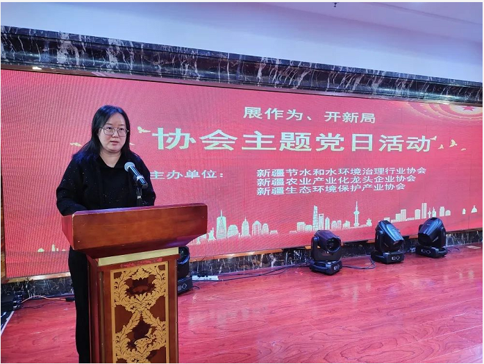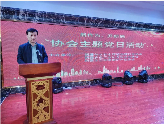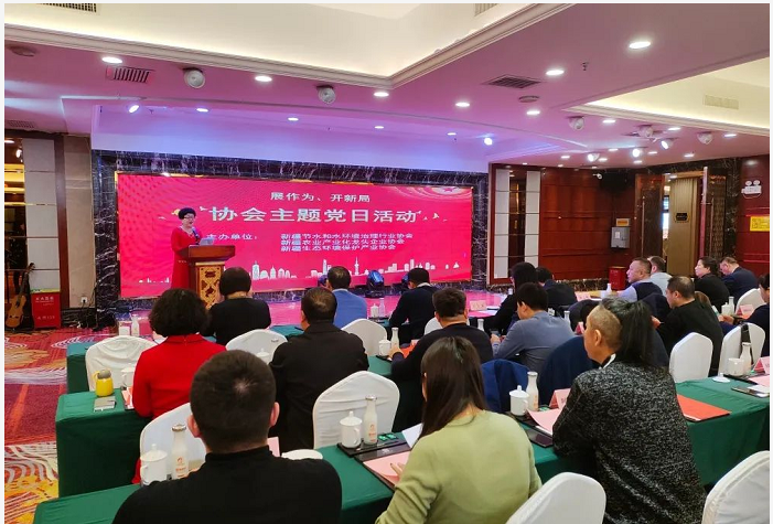 為豐富支部組織生活、搭建黨建交流平臺,進一步提升基層黨組織的凝聚力、向心力和戰(zhàn)斗力,2022年1月25日,由新疆生態(tài)環(huán)境保護產(chǎn)業(yè)協(xié)會(以下簡稱:環(huán)保協(xié)會)、新疆節(jié)水和水環(huán)境治理行業(yè)協(xié)會(以下簡稱:節(jié)水協(xié)會)、新疆農(nóng)業(yè)產(chǎn)業(yè)化龍頭企業(yè)協(xié)會(以下簡稱:龍頭協(xié)會)主辦的“展作為、開新局”主題黨日暨迎新春活動在烏魯木齊順利舉行。自治區(qū)民政廳、自治區(qū)工業(yè)和信息化廳、自治區(qū)水利廳領導、自治區(qū)生態(tài)環(huán)境廳和自治區(qū)農(nóng)業(yè)農(nóng)村廳領導出席活動。