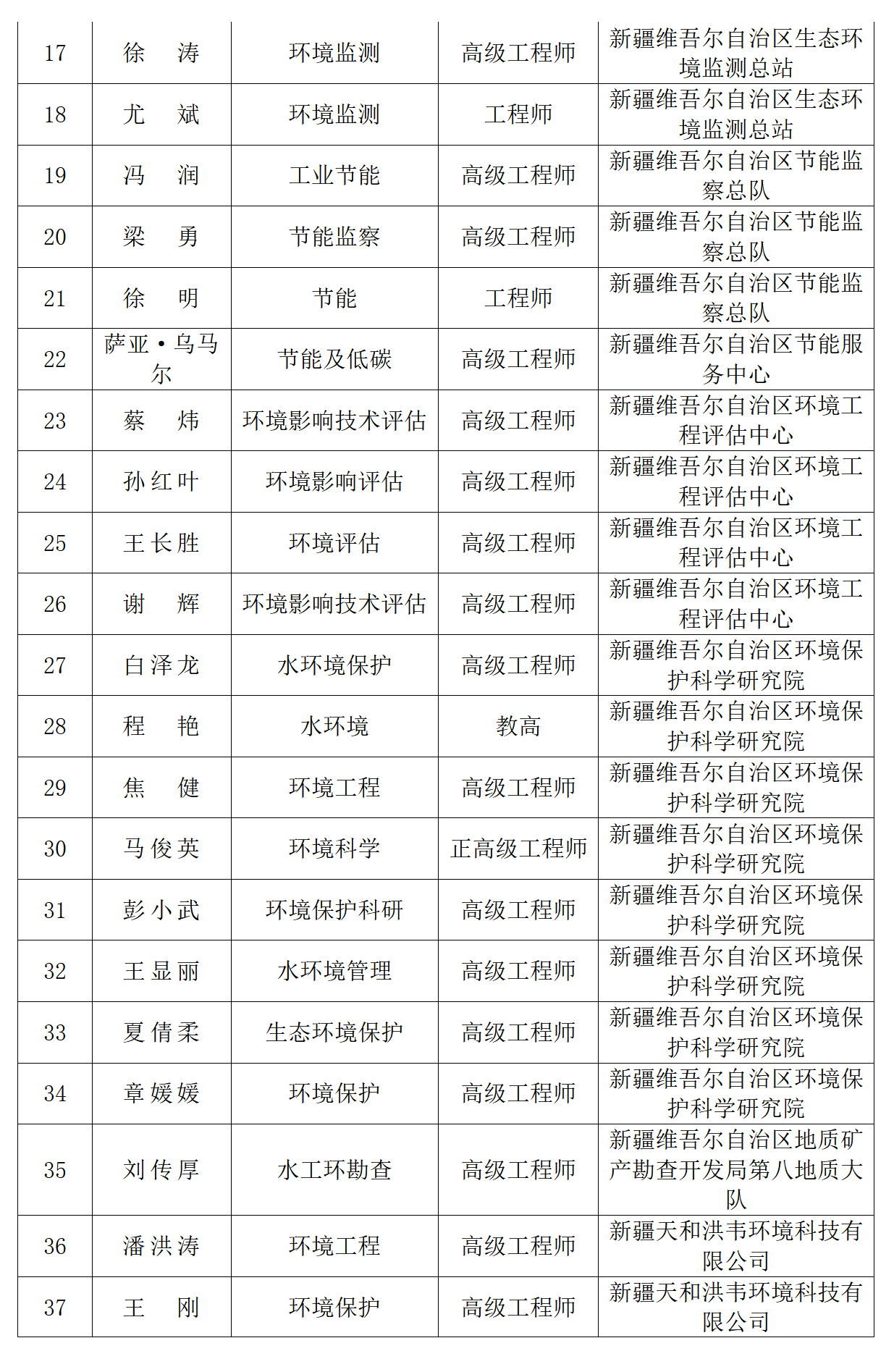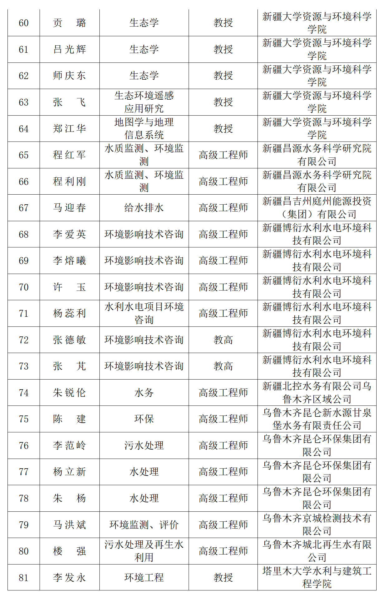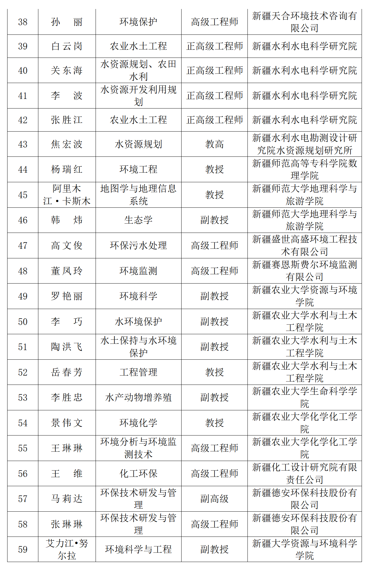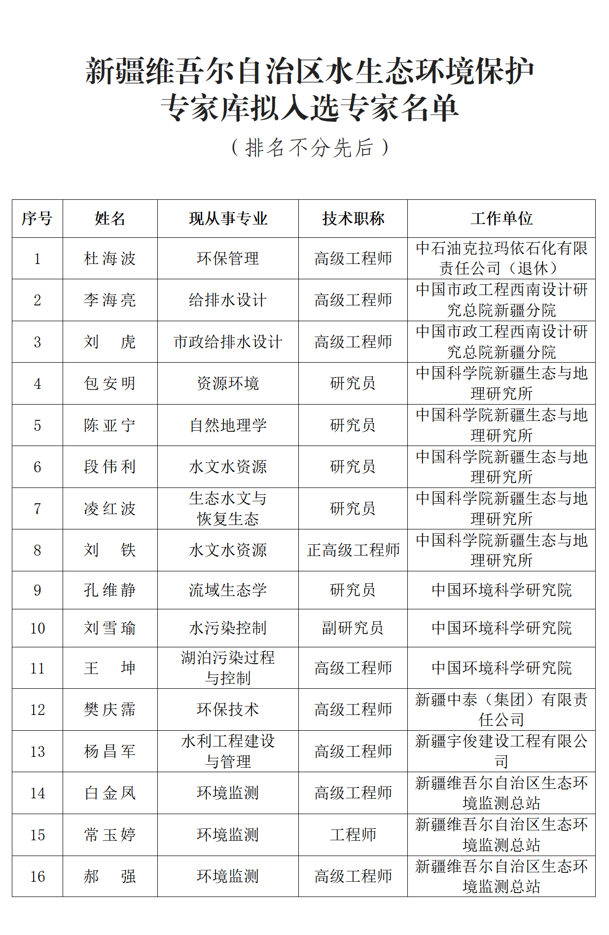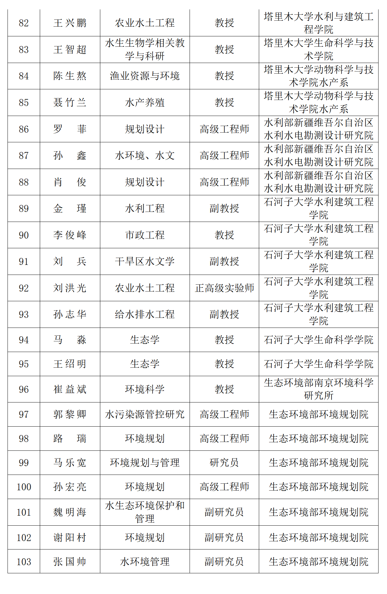 附件:新疆維吾爾自治區(qū)水生態(tài)環(huán)境保護(hù)專家?guī)鞌M入選專家名單